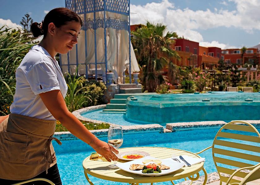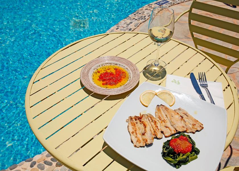 Το Pool Bar προσφέρει ελαφριά σνακ, δροσερές σαλάτες και πιάτα βασισμένα στην κρητική και μεσογειακή διατροφή.