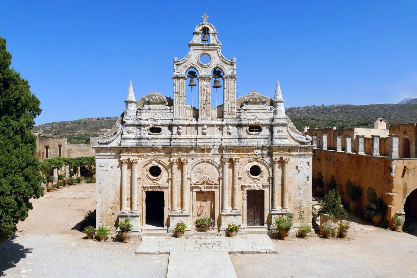 Situated in the prefecture of Rethymnon, the monastery comprises two main building complexes, the ruined Lower Monastery of St. John the Baptist, and the currently operational Upper (Rear) Monastery of St. John the Theologian. The monastery was probably founded in the Middle Ages, during the occupation of Crete by the Republic of Venice, its founder being a feudal lord named Prevelis. It developed over several centuries as a religious and cultural centre for the local population. After the Ottoman Turkish occupation of the island, Abbot Melchissedek Tsouderos led a group of rebels in the Greek War of Independence in 1821, one result of which was that the monastery was destroyed, but later rebuilt. In 1866 and 1878, the monastery was again active in organising rebellions against the Turks, which helped contribute to Crete's eventual independence and then its political union with Greece.